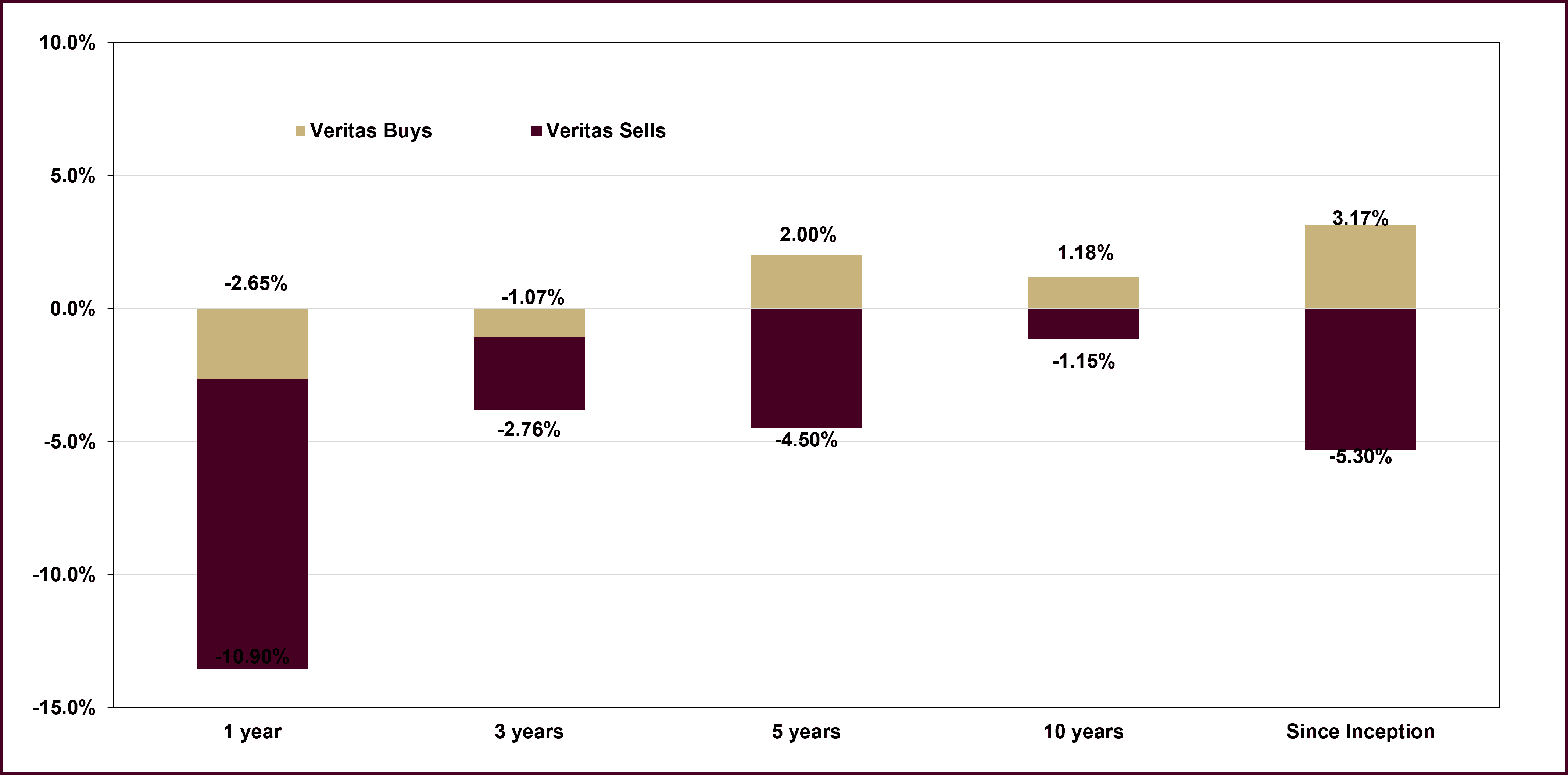 Veritas Sells/Reduces underperformed by 444 basis points CAGR since inception