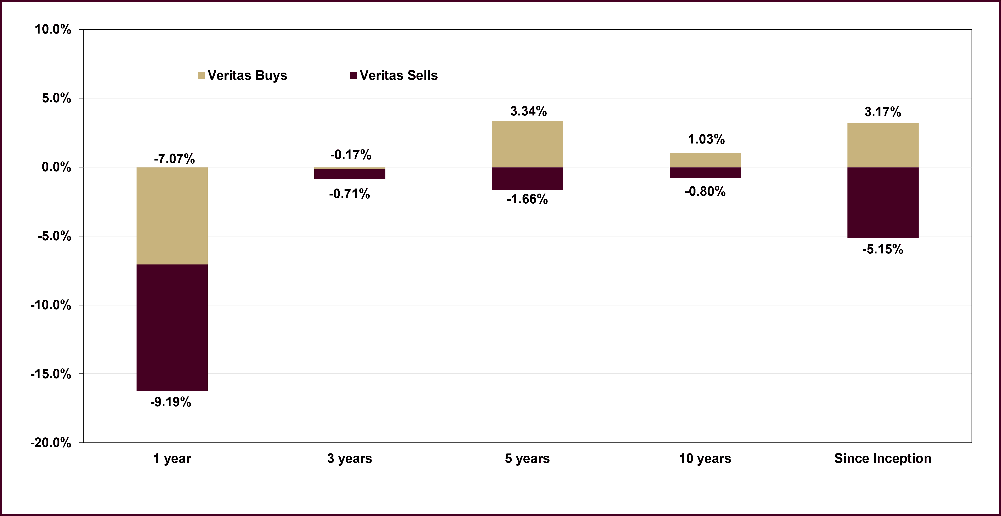 Veritas Sells/Reduces underperformed by 441 basis points CAGR since inception